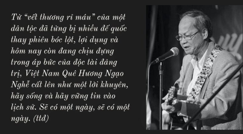 Từ “vết thương rỉ máu” của một dân tộc đã từng bị nhiều đế quốc thay phiên bóc lột, lợi dụng và hôm nay còn đang chịu đựng trong áp bức của độc tài đảng trị, Việt Nam Quê Hương Ngạo Nghễ cất lên như một lời khuyên, hãy sống và hãy vững tin vào lịch sử. Sẽ có một ngày, sẽ có một ngày.